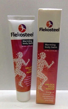 — Bálsamo orgánico Flekosteel ayuda al cuerpo a producir colágeno, que refuerza los ligamentos y aumenta la elasticidad de los músculos. Flekosteel no contiene hormonas ni antibióticos, que requieren una selección individual en el tratamiento.